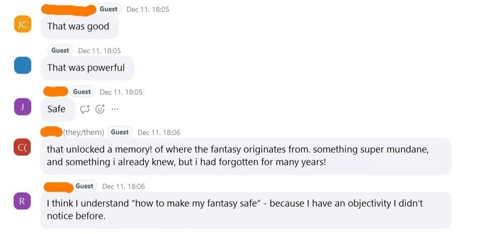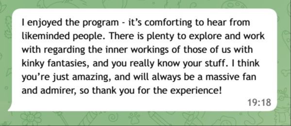 This experience is for feminists, survivors, and people with conflicted feelings about taboo turn-ons. People of all genders are welcome. I'll be screening all applications personally to ensure that everyone who joins is a good fit and agrees to uphold the guidelines and boundaries of the space.